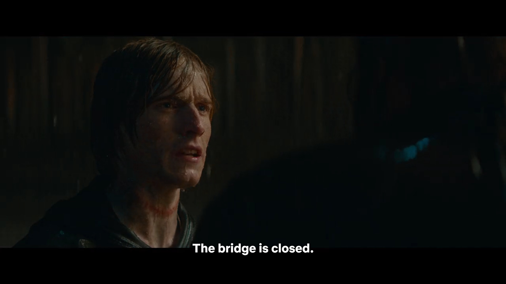 Elsewhere, a white-haired old woman tells a dark-haired young woman that everybody has to die. The young woman’s unborn son is the origin, she says, and gave life to everybody in both worlds. While she explains this, three men approach: young, middle-aged, and old. I think they’re meant to be the same person at different ages. The young woman is Eva, and she will do anything to save her son. If Eva wants “Jonas” (her son, I think?) to live, says the old woman, she must do the same thing that was done in every previous iteration of the loop.