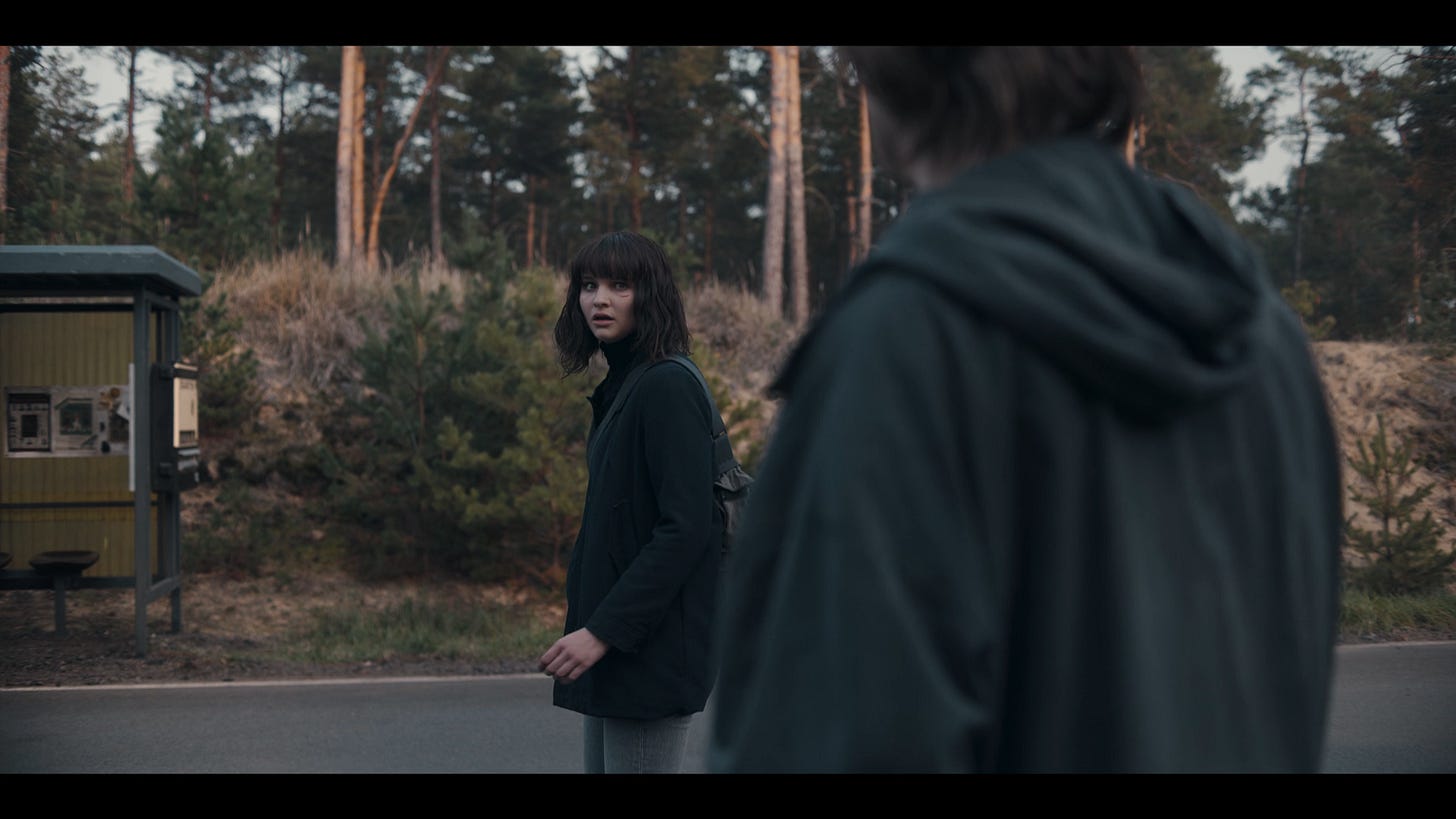 Jonas and Eva reappear on a street outside the power plant. Eva says this can’t be: Jonas is dead. He’s equally shocked: You look like her.