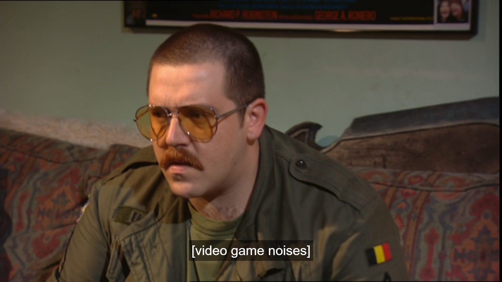 With Tim now… ahem… busy, and Daisy out of it, Mike has an idea. Wearing military fatigues, he approaches a quartet of similarly-clad friends at a bar. He calls them “boys”; they call him “Sarge”3.