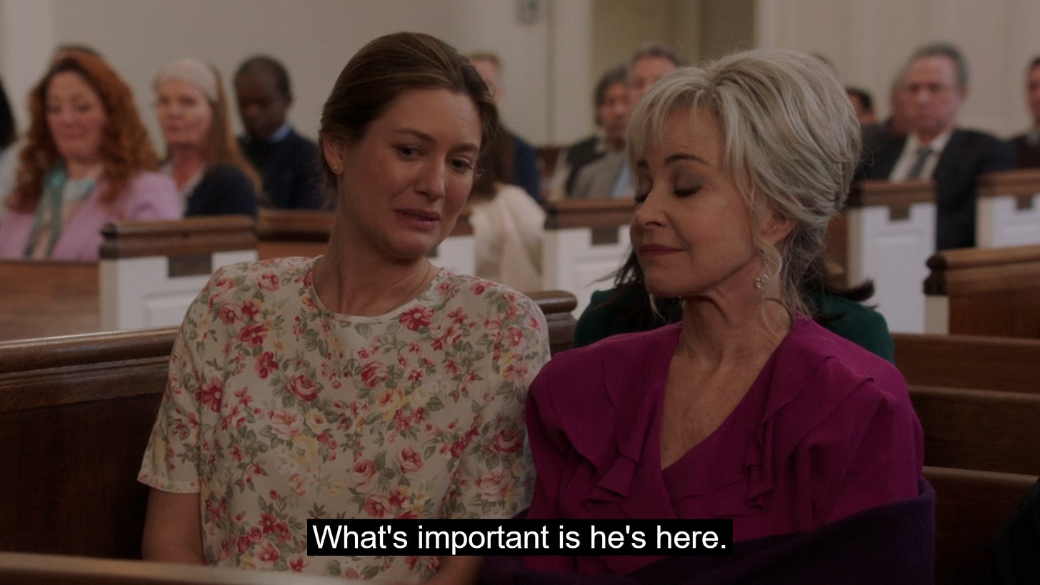 Back to the episode. Sheldon and Missy are in a sort of prep room at the church, and the pastor starts to say that he knows their father would- but gets no further, as Missy declares that her dad’s dead and storms out. But Sheldon stays. “I believe in you,” he tells his mother, reprising his line from the Previously.