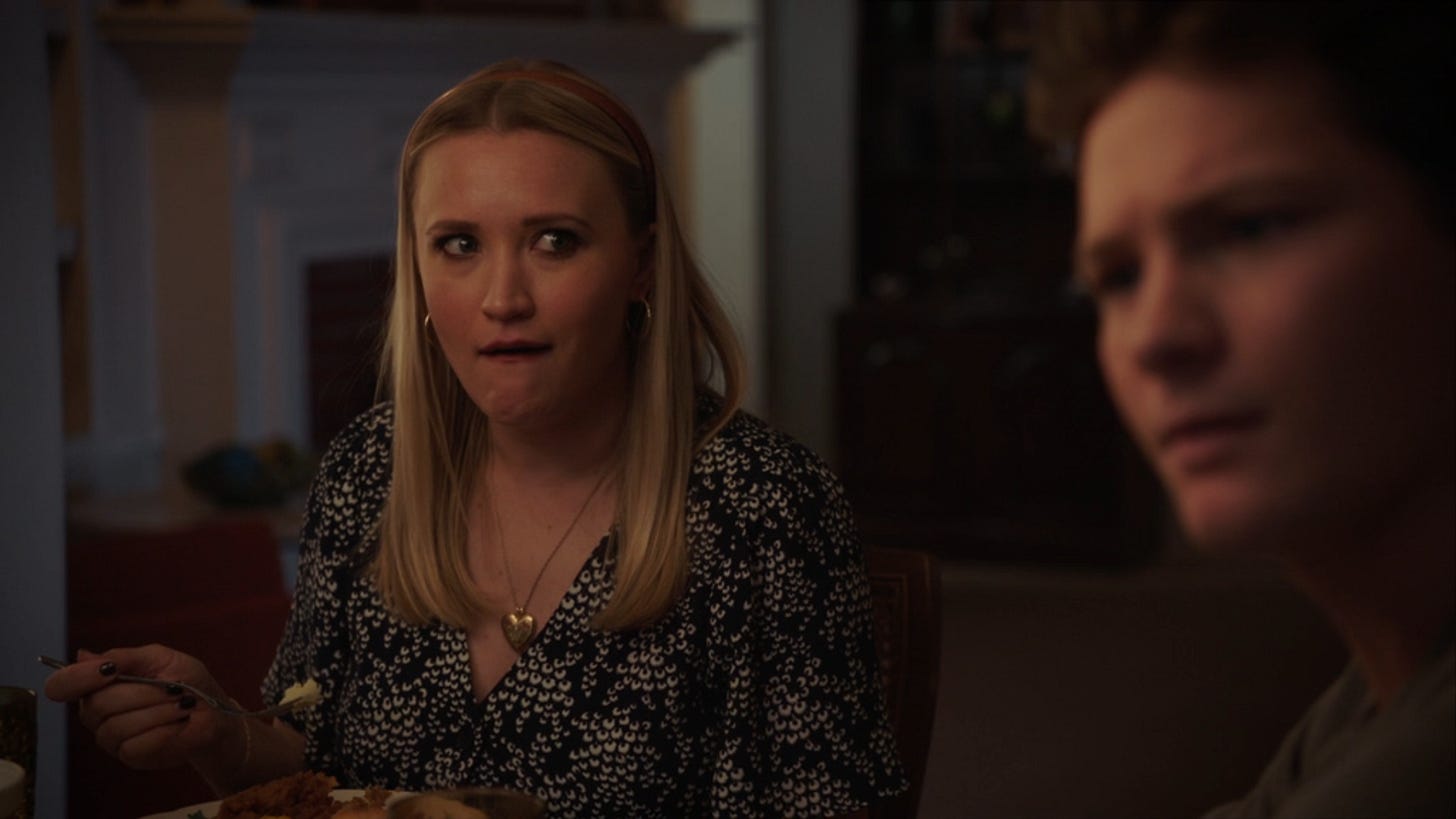 After dinner, Male Cousin, who I learn is named Georgie, encounters Mary crying outside. She desperately wants to get the kids baptized and is upset that Georgie and everyone treats it as a joke. Between this and the following two conversations I learn that I have the family tree wrong: Mary has three kids, I think: Georgie, Sheldon, and Younger Sister (whose name I don’t know yet). The older woman isn’t Mary’s sister but rather Mary’s mother. And Female Cousin, whose name I don’t know yet either, is not a cousin at all but rather Georgie’s wife.
